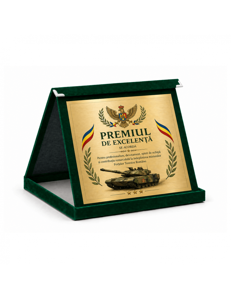 • Placheta onorifică din catifea verde cu placuta metal aurie PLD 16k